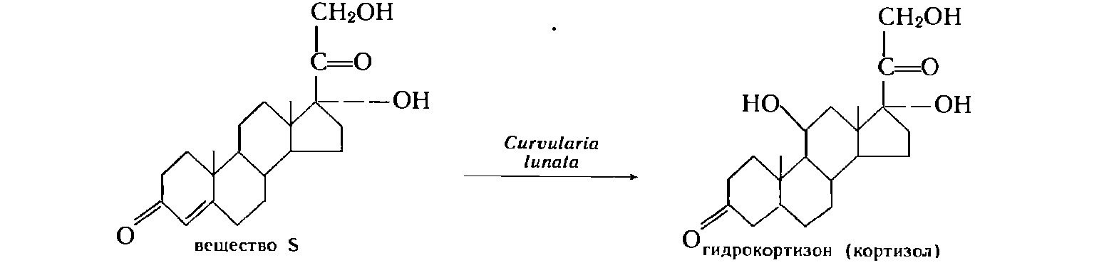 Гидроксилирование стероидов осуществляется очень многими микроорганизмами, чаще всего грибами, даже конидии некоторых грибов обладают гидроксилирующей активностью. Гидроксилирование стероидов при помощи гриба Rh. Nigricans — яркий пример сочетания, специфичности и разнообразия действия микроорганизмов.