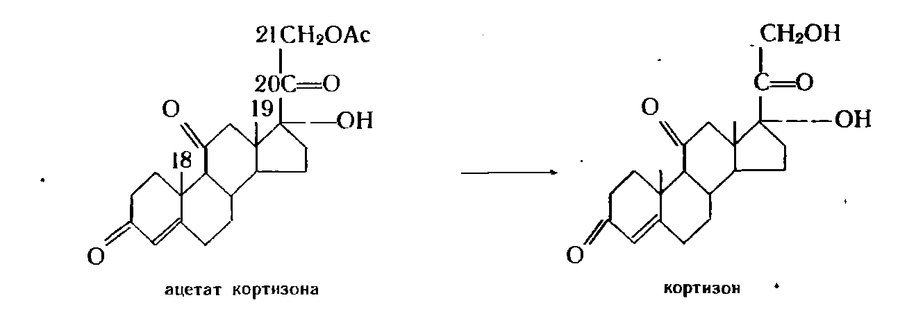 Микробиологическое расщепление эфирной связи осуществляется представителями различных таксономических групп, в частности флавобактериями. Культура Вас. Megaterium обладает специфической активностью по отношению к 21-ацетатам стероидов с диоксиацетоновой цепочкой:
