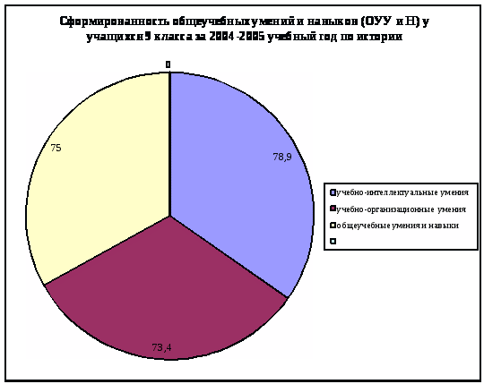 В качестве опытного «полигона» для апробации, я выбрала учащихся 9 классов. Перед началом запуска проекта проанализировала качество знаний по истории в этом классе, уровень овладения учащимися общеучебными умениями и навыками, а также специальными с целью отслеживания динамики изменений.