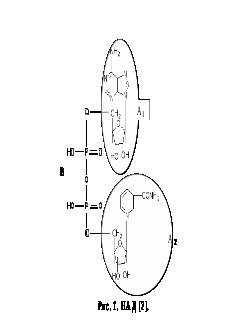 Молекула НАД (рис. 1) состоит из двух мононуклеотидных единиц – аденозин-5-фосфата (см. рис. 1, А>1>) и никотинамиднуклеотида (см. рис. 1, А>2>), соединенных между собой ангидридной связью; их фосфатные группы образуют 5,5-пирофосфатный мостик (см. рис. 1, В).
