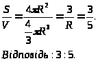 Діаметр кулі дорівнює 10 см. Знайти відношення площі поверхні цієї кулі до її об’єму.