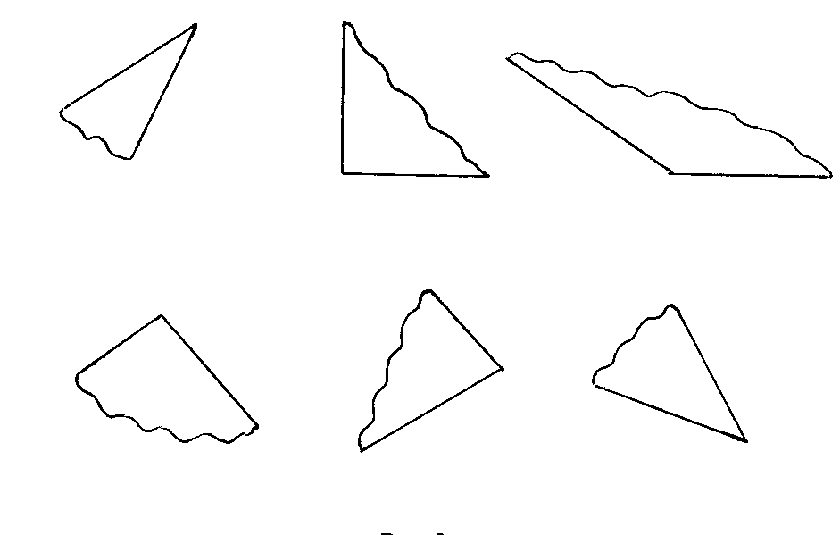 Потім вивчають окремі види многокутників. На цьому етапі розглядають елементи многокутників: сторони, дуги, вершини. Так, вивчаючи число 3, розглядають різні трикутники. На моделях трикутників, виготовлених з кольорового цупкого паперу, пластмасу, дерева тощо, учні показують три сторони, три кути, три вершини в кожній фігурі. Потім діти самостійно моделюють трикутники з паличок і кусочків пластиліну або з паперових смужок; позначивши вершини, креслять і розмальовують трикутники в зошитах; знаходять предмети, які мають форму трикутників; відшукують трикутники серед інших геометричних фігур, накреслених на дошці або виставлених на набірному полотні у вигляді моделей з цупкого кольорового паперу. При цьому вчитель повинен потурбуватись, щоб учні розглядали різні види трикутників (рівносторонні, прямокутний, тупокутний, гострокутний). Це допоможе формуванню правильного уявлення про трикутник.