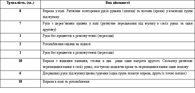 Таблиця 1 Характеристика вправ уроку евритмії в 3 класі загальноосвітньої школи №77 м. Харкова