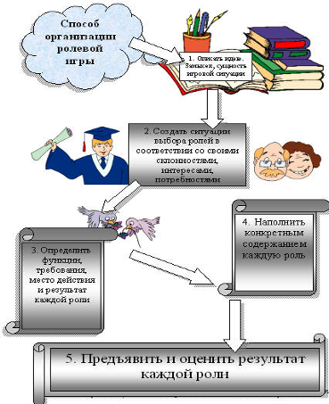 Ролевая игра формирует у учащихся способность сыграть роль другого человека, увидеть себя с позиции партнера по общению. Она ориентирует учащихся на планирование собственного речевого поведения и поведения собеседника, развивает умение контролировать свои поступки, давать объективную оценку поступкам других. Следовательно, ролевая игра выполняет ориентирующую функцию.