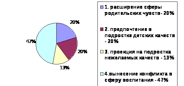 В.Н. Дружинин выделяет другие роли: "ребенок-обуза", "ребенок-раб", "ребенок - любовник" (одинокая, как правило, мать настаивает на "отношениях для двоих", закрепощает ребенка в узах своей любви); "ребенок как оружие" в борьбе с супругом; ребенок – "заместитель мужа" (от него требуют постоянного внимания, заботы, чтобы он был рядом и делился личной жизнью) /14, с.102/.