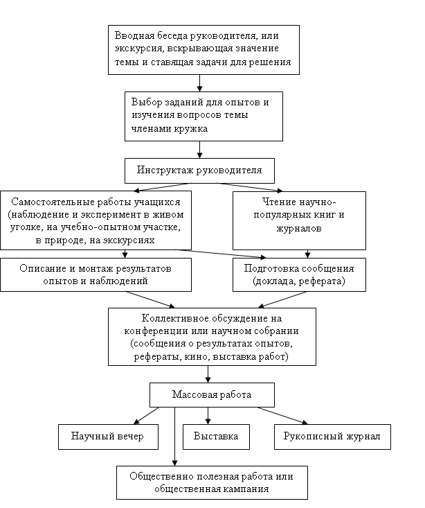 Схема работы кружка юннатов (по Верзилину Н. М., Корсунской В. М.)