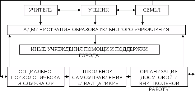 Требовалась совершенно иная структура управления воспитательным процессом, объединяющая в себя весь процесс социализации ребенка на данном возрастном этапе и к тому же управляемая я, прогнозируемая и понятная всем участникам воспитательного процесса.