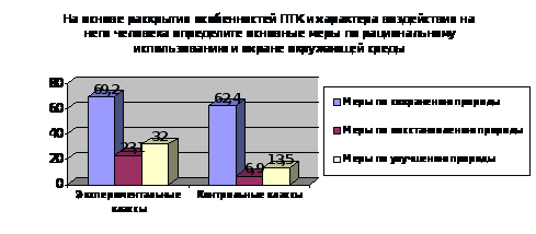 Как показали результаты констатирующего этапа эксперимента, школьники затрудняются в установлении причинно-следственных связей и формулировании выводов при рассмотрении вопросов взаимодействия общества и природы. Так, большинство учащихся не могут обосновано предсказать последствия деятельности человека в природе(обоснованные ответы были только у 6% от числа опрошенных).