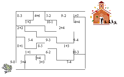 Помоги лягушонку, стремящемуся к знаниям, добраться в школу через лабиринт с числовыми выражениями. При этом значения выражений должны составить отрезок натурального ряда.