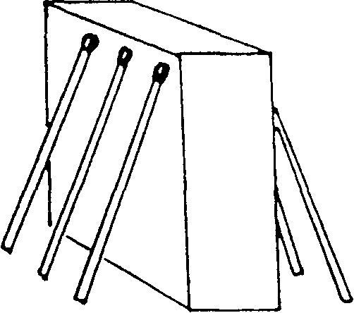 Спичечный коробок ставится между двумя играющими на ребро. Первый играющий осторожно ставит спичку под углом со своей стороны коробка, затем второй ставит со своей.