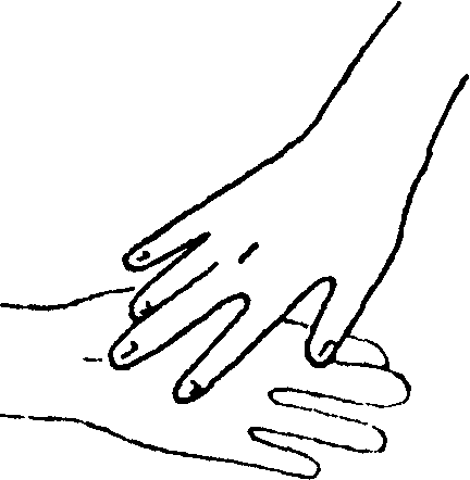 соединить под углом кончики пальцев правой и левой рук;