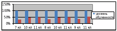 Продуманный выбор приоритетных направлений деятельности, квалифицированное планирование учебного процесса, ориентированное на цели и задачи обучения, применение ИКТ, повышение квалификации путем прохождения проблемных и постоянно действующих курсов, участие в работе семинаров, а также самообразование позволяют мне добиваться стабильных результатов в обучении учащихся математике. Уровень эффективности обучения и качества обученности можно проследить в динамике трех последних лет. (Таблица 2, 3)