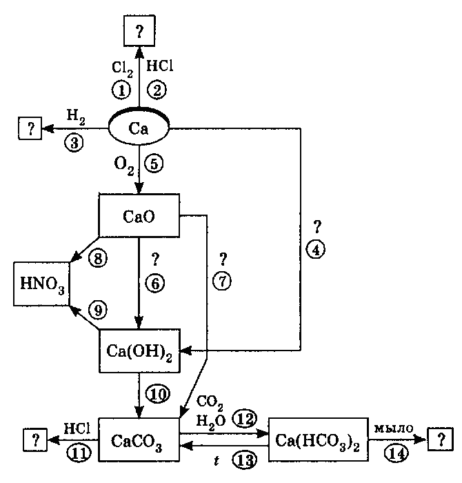 II. Используя схему «Кальций и его соединения», напишите уравнения реакций 1 – 14