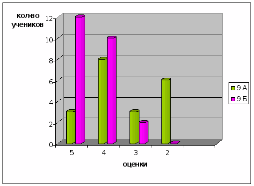 После проведения разработанных занятий были проведены контрольные работы и тесты, которые приведены в последнем разделе. Результаты эксперимента в школе приведены в диаграммах, отражающих изменения качества знаний и успеваемости в контрольном (9а) и экспериментальном (9 (б)) классах.