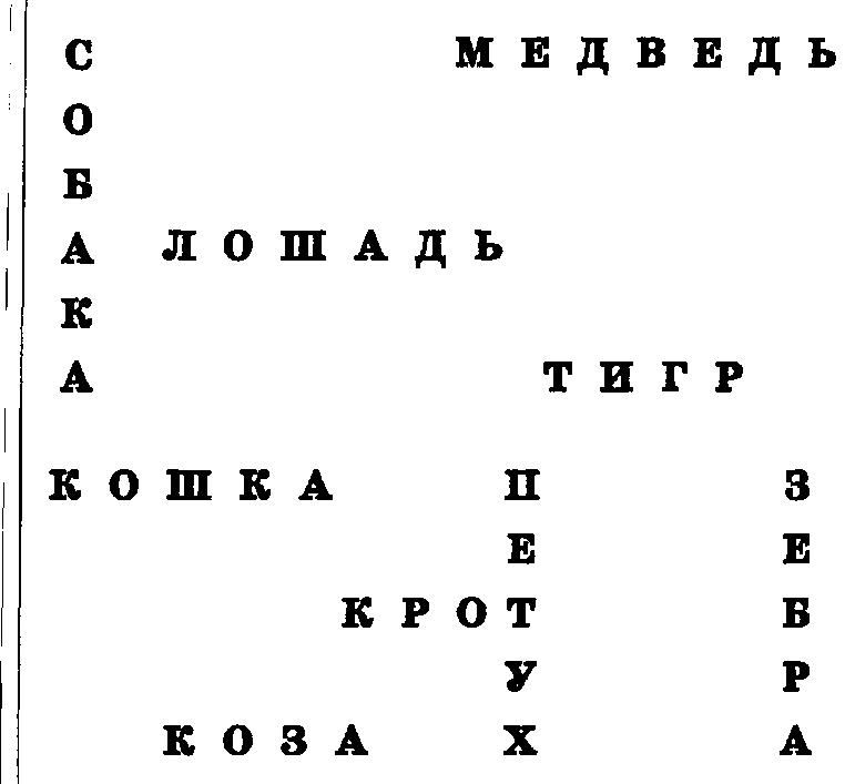 Приведенное ниже упражнение предполагает установление отношений, в которых находятся данные слова. Примерная пара слов является как бы ключом выявления этих отношений. Зная их, можно подобрать пару к контрольному слову. Работа с этим упражнением ведется совместно учителем и детьми. Задача учителя — подвести ребят к логическому выбору связей между понятиями, возможности последовательно выявлять существенные признаки для установления аналогий. Каждое задание досконально разбирается: находится логическая связь, переносится на приведенное рядом слово, проверяется правильность выбора, приводятся примеры подобных аналогий. Только когда у детей будет сформировано устойчивое и последовательное умение устанавливать логические ассоциации, учитель может переходить к заданиям для самостоятельной работы.