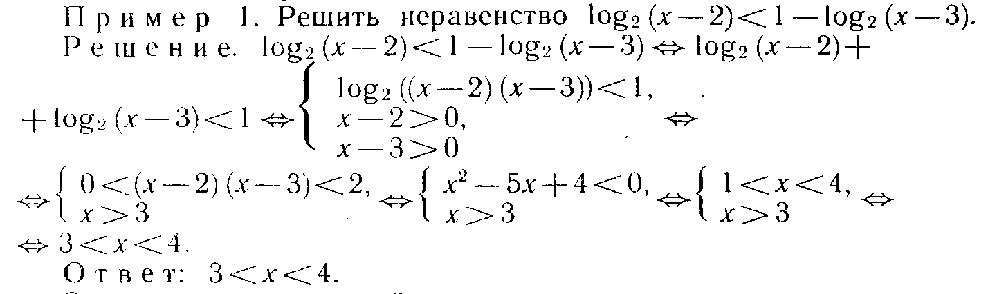 Здесь учет ограничений при использовании тождества для логарифма произведения выполнен при втором переходе, в результате чего неравенство преобразовалось в систему неравенств, из которых два последних позволяют сохранить исходную область определения неизменной.