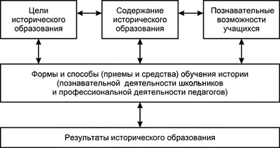 Обучение истории, как уже говорилось, – это сложный процесс, включающий взаимосвязанные и находящиеся в движении компоненты: цели обучения, его содержание, передачу знаний и руководство их усвоением, учебную деятельность школьников, результаты обучения.