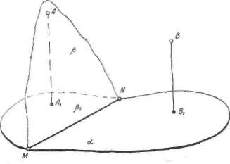 Решение. Допустим, что точка В не лежит в плоскости . Решение задачи в этом случае свелось бы к перечислению следующей совокупности построений: