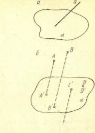 При выполнении «воображаемых» построений считаем, что, во-первых, умеем строить плоскость, если заданы определяющие ее элементы (три точки, не лежащие на одной прямой, или прямая и точка вне ее, или две пересекающиеся прямые, или две параллельные прямые), и, во-вторых, в любой плоскости умеем осуществить все те построения, которые обоснованы в планиметрии. Так, если требуется провести через данную прямую а произвольную плоскость, берут произвольную точку А вне прямой а (возможность выбора такой точки также постулируется) и считают, что искомая плоскость проведена через прямую а и точку А.