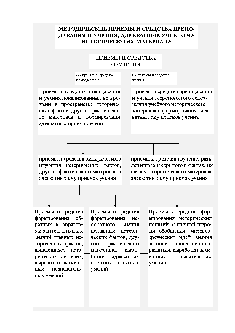 Деятельность учителя и учащихся осуществляется посредством определения способов – методических приемов и средств. И результаты деятельности оказываются положительными только при условии, если учитель и ученик пользуются не случайно избранными приемами и средствами преподавания и учения, а адекватными целями обучения и содержанию учебного материала, согласованными с познавательными возможностями школьников. Иными словами, приемы и средства, как и сама деятельность, закономерно вытекает из особенностей содержания учебного материала, целей его изучения и познавательных возможностей учащихся1.