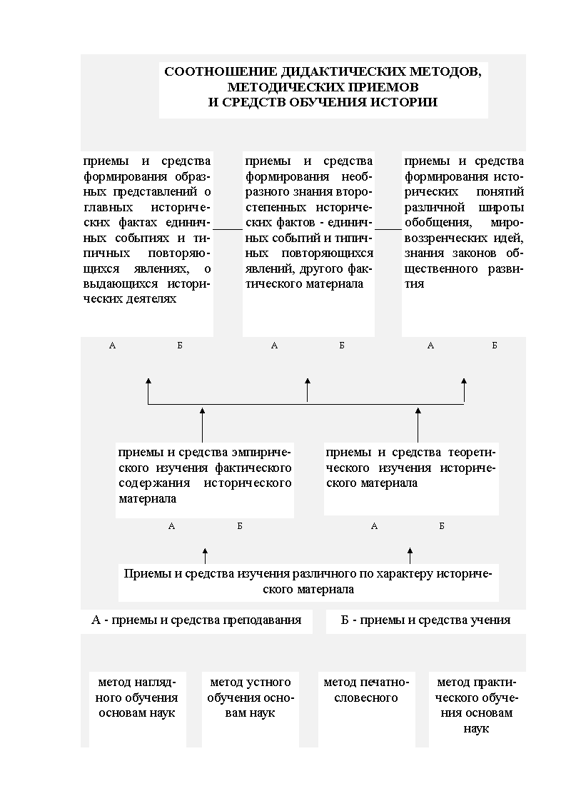 Разные приемы раскрытия одного и того же исторического материала, например рассказ, беседа, чтение документа, демонстрация картины, пробуждают у учащихся различную учебную деятельность и соответственно приводят к разным педагогическим результатам.1