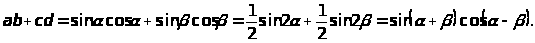 Так как cos(α- β)=0, то sin(α +β)*cos(α - β)=0, a значит ab+cd=0.