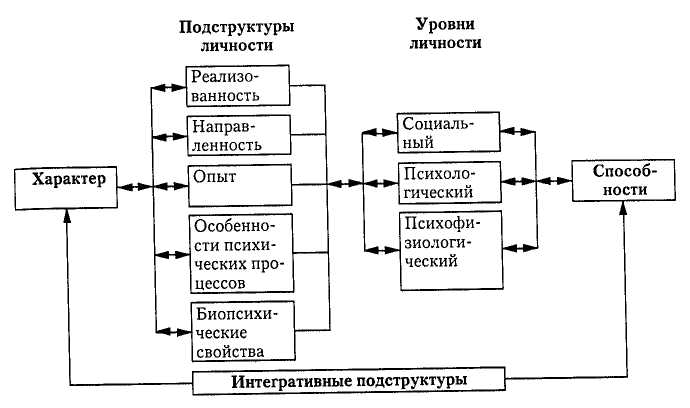 На основе критерия соотношения социальных и биологических свойств в качествах личности в ее структуре выделяют пять иерархически соотносящихся подструктур (по мере убывания социальной составляющей).