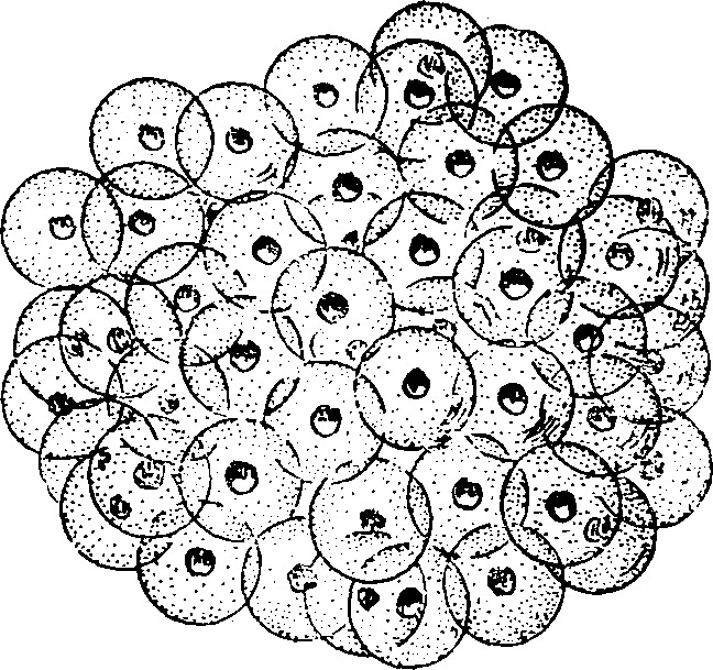 Низкая температура задерживает развитие. Если погода теплая, яйцо многократно делится и превращается в многоклеточный зародыш. Через одну-две недели из икринки вылупляется личинка лягушки — головастик. Внешне он напоминает маленькую рыбку с большим хвостом. Дышит головастик сначала наружными жабрами (в виде небольших пучков по бокам головы). Вскоре они сменяются внутренними жабрами. У головастика один круг кровообращения к двухкамерное сердце, на коже заметна боковая линия (см. с. 104). Таким образом, личинки земноводных имеют некоторые черты строения рыб.