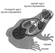 Сколько кругов кровообращения в сердце взрослых земноводных? (Два круга.)