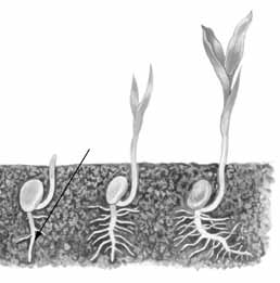 Главную роль в продвижении растущего корня в грунте играет корневой чехлик. Он как колпачок защищает верхушку корня от повреждений.