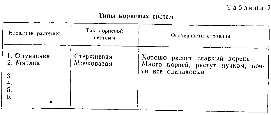 4.Заполните таблицу 7 «Типы корневых систем».