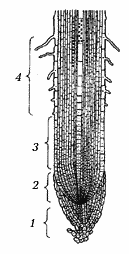 1. Зона всасывания находится между зоной роста и проводящей зоной корня.