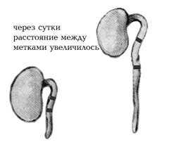 На втором уроке после проверки знаний о зонах корня, внутреннем строении корневого чехлика и зоны всасывания учитель привлекает внимание учащихся к таблице и рисунку учебника, показывает зоны деления и роста корня, просит учащихся описать строение клеток этих зон, подчеркивает, что в этом участке корня клетки постоянно делятся, а затем растут. После этого демонстрируется опыт «Верхушечный рост корня», с помощью которого учащиеся убеждаются в том, что корень растет верхушкой. Затем учитель вводит понятие ткани, иллюстрирует его на примере особенности строения и функций образовательной ткани.
