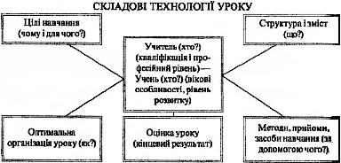 Інноваційні процеси, що охопили сучасну школу, стосуються насамперед уроку, особливо його структури. Цікавою проблемою з цього боку є технологія уроку, що передбачає системний підхід до навчального процесу. Системний підхід охоплює всі основні моменти розробки системи уроків – від постановки цілей і конструювання навчального процесу до перевірки його ефективності. За умов системного підходу до навчальної діяльності технологію уроку слід розглядати як „систематичне і послідовне втілення на практиці попередньо спроектованого навчально-виховного процесу” [ ].