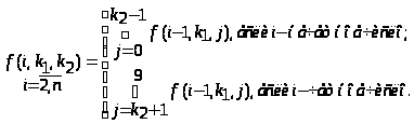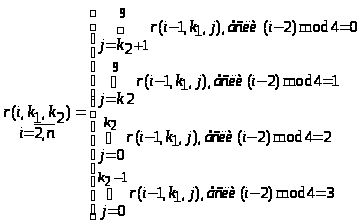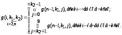 q (n,k>1>,k>2>) - количество n-значных волнистых чисел данного типа, начинающихся с цифры k>1> и заканчивающиеся на цифру k>2>.