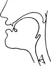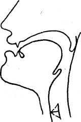 1) Кончик языка, как при произнесении звука с, упирается в передние нижние зубы. Язык приподнят и выгнут. Передняя часть спинки языка смыкается с нёбом (у альвеол). Язык широко распластан, боковые края напряжены. В момент выдоха передняя часть спинки мгновенно размыкается с нёбом. Кончик языка слегка отдёргивается от нижних зубов, усиливая тем самым толчок воздушной струи.