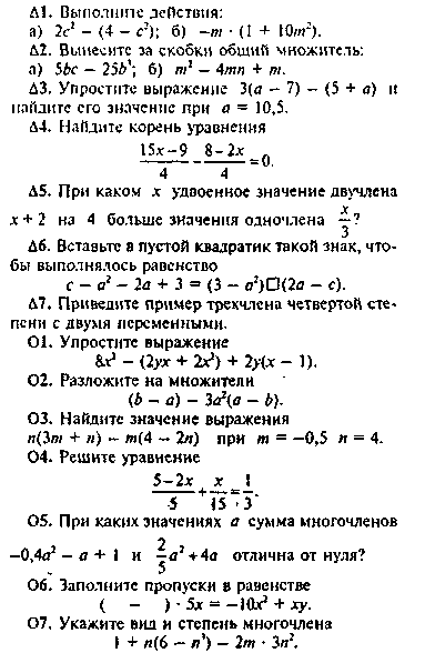 Задания со значком ∆ должны отвечать минимальному уровню программных требований; со значком О - соответствовать большинству задач учебника, они предусматривают применение знаний и умений в стандартных ситуациях. Наконец, самые трудные задания — со значком □, рассчитанные на наиболее подготовленных или интересующихся математикой ребят, требуют от последних применения знаний в более сложных ситуациях; такие задания должны носить исследовательский или творческий характер.