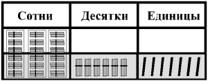 На следующем этапе приступают к изучению нумерации многозначных чисел, состоящих из единиц I и II класса. Первые упражнения можно провести, используя нумерационную таблицу.