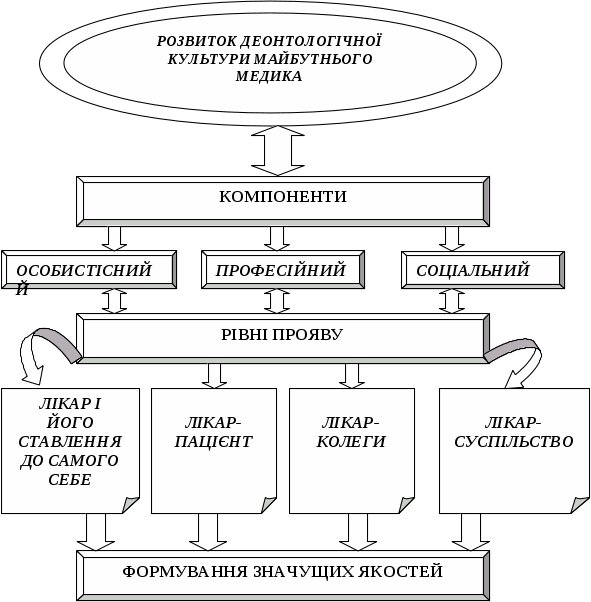Рис. 1. Модель розвитку деонтологічної культури майбутнього медичного працівника