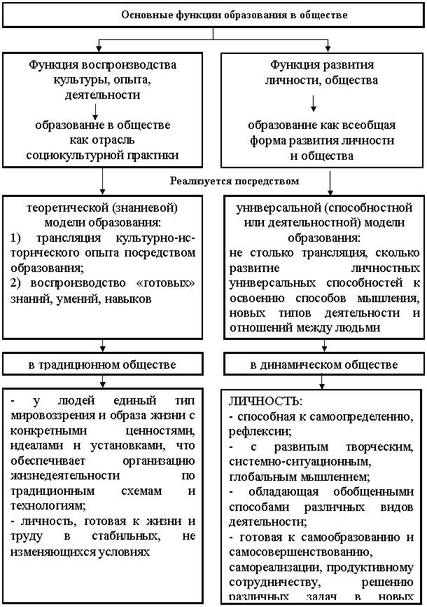 Первая функция осуществляется посредством теоретической (знаниевой) модели образования, вторая – универсальной (способностной или деятельностной).