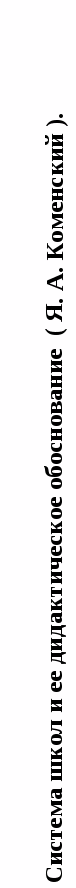 Я. А. Коменский разработал оригинальную дидактическую систему, получившую позднее название классно-урочной и сохраняющуюся во многих своих чертах до настоящего времени. Он стремился к такой организации обучения, при которой было бы предусмотрено четкое распределение содержания всех видов школьной работы по годам, месяцам и даже дням обучения. При такой системе организации процесса обучения дети одного возраста и приблизительно одного уровня знаний под общим руководством учителя должны были одновременно продвигаться вперед к единой для всех образовательной цели. Так возникли классы с постоянным составом учеников, учебный год со строго определенным началом и концом, продолжительностью учебного дня – от четырех уроков для младших школьников до шести уроков в день у старших школьников.