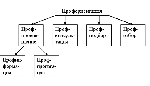 Как научно обоснованная система государственных мероприятий профориентация включает в себя ряд различных по свому содержанию и целям форм (рис.1).