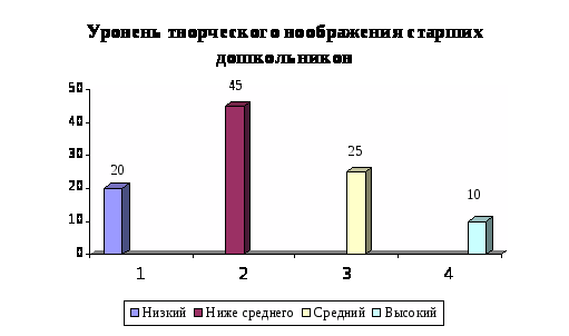 Итак, анализ графических данных показал, что уменьшилось количество детей бездумно повторяющих образец, увеличилось количество детей, которые научились придумывать свой образ, что говорит о повышении уровня творческого воображения у детей старшего дошкольного возраста.