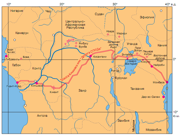 В сентябре того же года аналогичная вспышка произошла в северном Заире, в деревнях, расположенных на берегах небольшой реки Эбола (см. рис. 1). Заболевание было очень похоже по клинической картине на наблюдавшееся в Судане, однако смертность в этом случае была намного выше - до 88%. Первым больным был школьный учитель, заразившийся, судя по всему, от употребления полусырого мяса больной обезьяны. Он попал в церковную больницу, где из-за отсутствия нужного оборудования (было всего несколько шприцев) практиковалось многократное применение шприцев для инъекций без стерилизации. Это и послужило причиной распространения инфекции среди больных, членов их семей и медперсонала. Распространение заболевания усугублялось специфическим ритуалом захоронения, при котором женщины, входящие в состав семьи, должны были лично привести тело в порядок голыми руками. Более того, одну из заболевших медсестер, бельгийку по национальности, решили перевезти в столицу страны Киншасу, где она умерла в одной из лучших частных больниц несмотря на применение всех известных методов лечения. От нее заразилась медсестра, попавшая в другую больницу, в которой и начался следующий виток эпидемии. Дело дошло до того, что президент Заира направил войска для установления карантина как в самой столице, так и в районе эпидемии, а правительства европейских стран всерьез рассматривали вопрос о прекращении полетов в Заир. С целью выяснения природы возбудителя и ликвидации эпидемий Всемирной организацией здравоохранения были привлечены лучшие эпидемиологи и вирусологи США, Бельгии, Англии и Франции. Возбудитель вскоре был идентифицирован как вирус, родственный вирусу Марбург; назвали его по имени реки Эбола. Эпидемию удалось остановить лишь путем применения строгих карантинных мер, наведением порядка в обращении со шприцами и в соблюдении правил санитарии в больницах, а также изменив ритуал захоронения умерших с целью сделать его безопасным для окружающих.