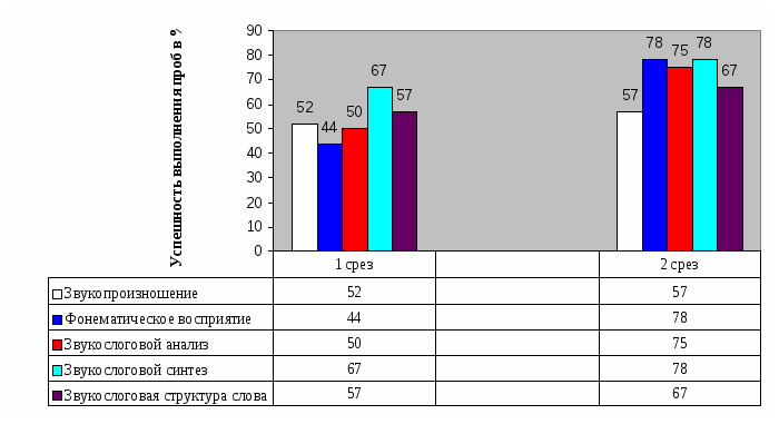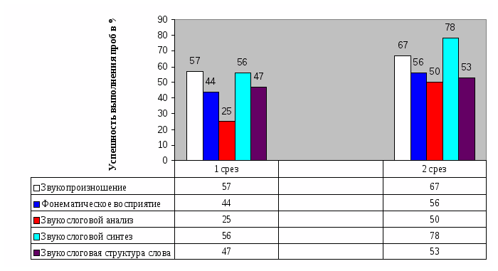 Объем и структура работы: дипломная работа состоит из введения, трех глав, заключения, списка изученной литературы (34 источника). Объем - 111страниц компьютерного набора без приложения. Она содержит 12 таблиц, 5 диаграмм, дидактические материалы для исследования звукослогового анализа и синтеза; протоколы обследования звукослогового анализа и синтеза.