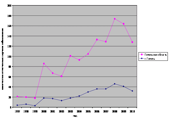 Приложение 2. Динамика заболеваемости Лайм-боррелиозом по городу Гомелю и Гомельской области