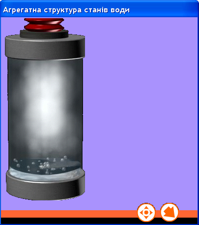 (Учні за допомогою програми проводять інтерактивний дослід агрегатної структури станів води. Див мал.2, мал.3, мал.4)