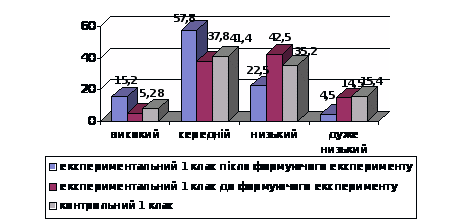 Констатуючий експеримент свідчить про необхідність для сучасного учителя-практика організації цілеспрямованої роботи з учнями-першокласниками з розвитку їх властивостей уваги, яка забезпечуватиме відповідний рівень функціонування пізнавальної сфери дітей і сприятиме покращенню результатів їх учбової діяльності.