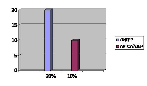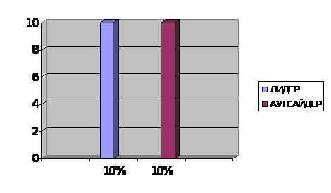 10% учащихся – «аутсайдеры»: Коркин Евгений, и 20% относятся к группе «лидеров» – Евсеев Вячеслав, Гуляев Сергей.