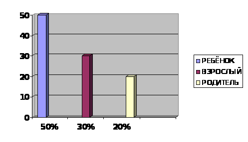50% учащихся выбрали состояние «ребёнок»: Лопатин Андрей, Скибин Игорь, Тупицин Алексей, Пересыпкина Елена, Масловская Оксана.
